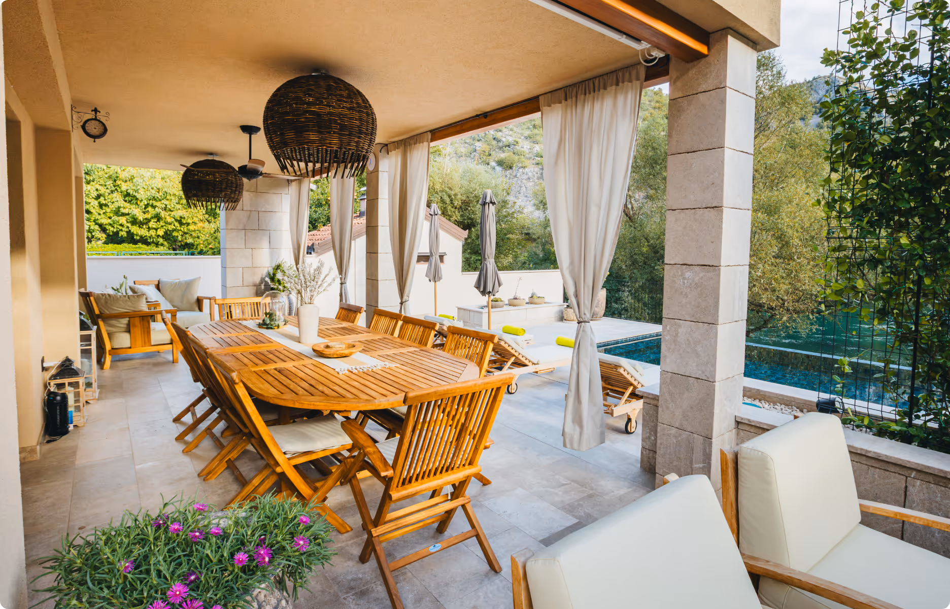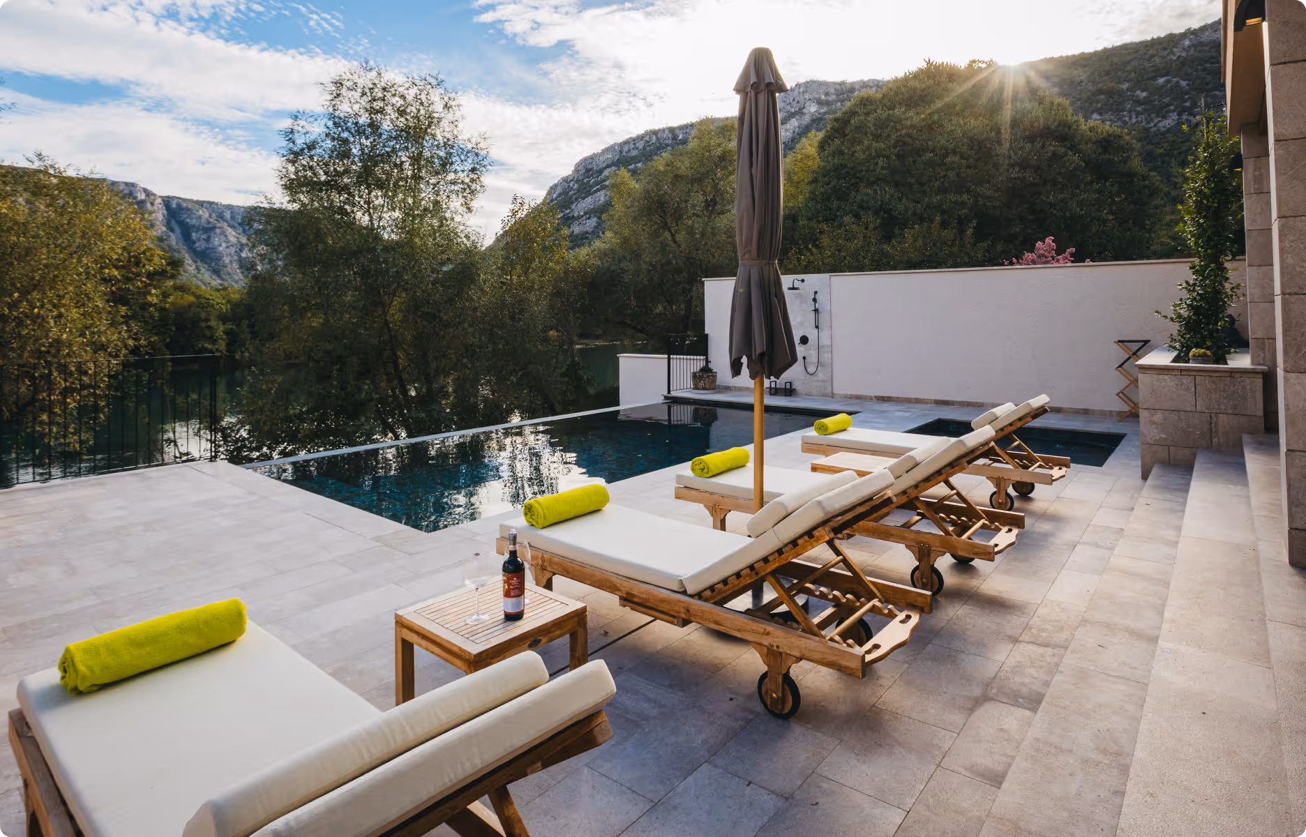 Svaka prostorija vile Teja poziv je na usporavanje - ne samo na odmor, već na osjećaj doma. U okruženju prirodnih materijala, toplog svjetla i tišine, vrijeme teče sporije.Samo nekoliko koraka dalje, rijeka Neretva tiho prolazi, a šuma i brdo bdiju nad mirom koji ovdje ne tražiš - on te sam pronalazi.